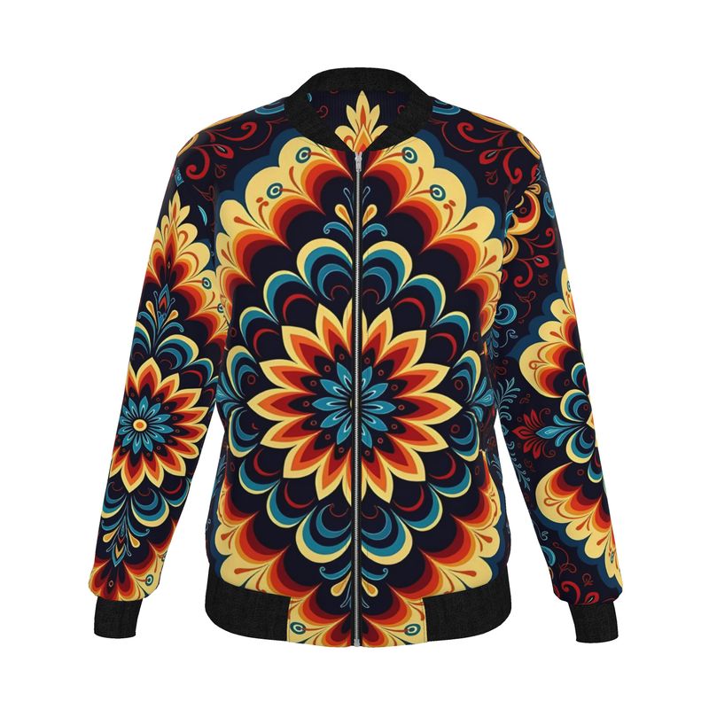 Sunburst Bloom — Women’s Reversible Silk Bomber Jacket Sacred Harmony Collection | Double Spirit